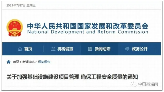 近日,發(fā)改委官網(wǎng)發(fā)布《加強基礎設施建設項目管理 確保工程安全質(zhì)量的通知》重點(diǎn)如下: