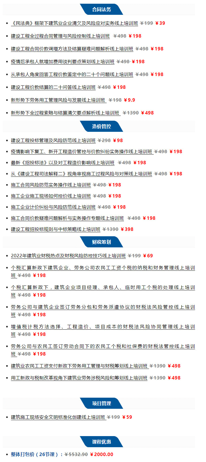 最新《招投標法》即將頒布實(shí)施,對建筑行業(yè)有哪些影響?建設工程招投標過(guò)程中有哪些熱點(diǎn)與難點(diǎn)問(wèn)題?對工程造價(jià)有哪些影響?如何規避這些影響帶來(lái)的風(fēng)險?課程內容