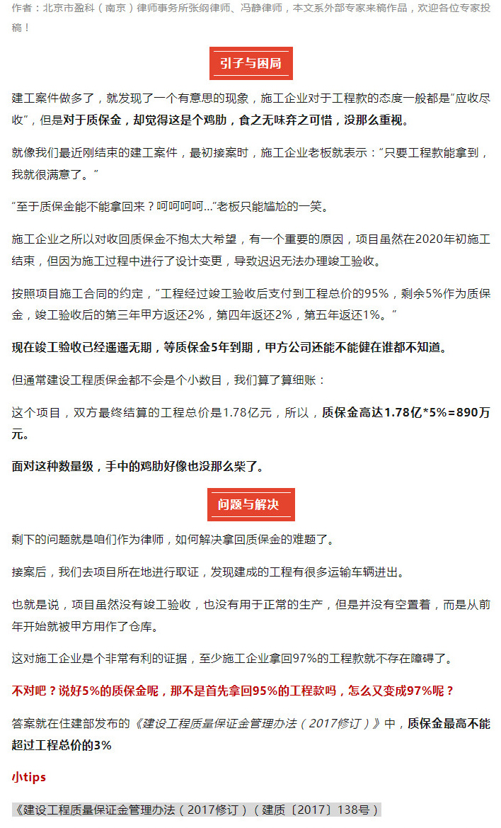 工程質(zhì)保金沒(méi)法要回來(lái)?我們給你解決方案