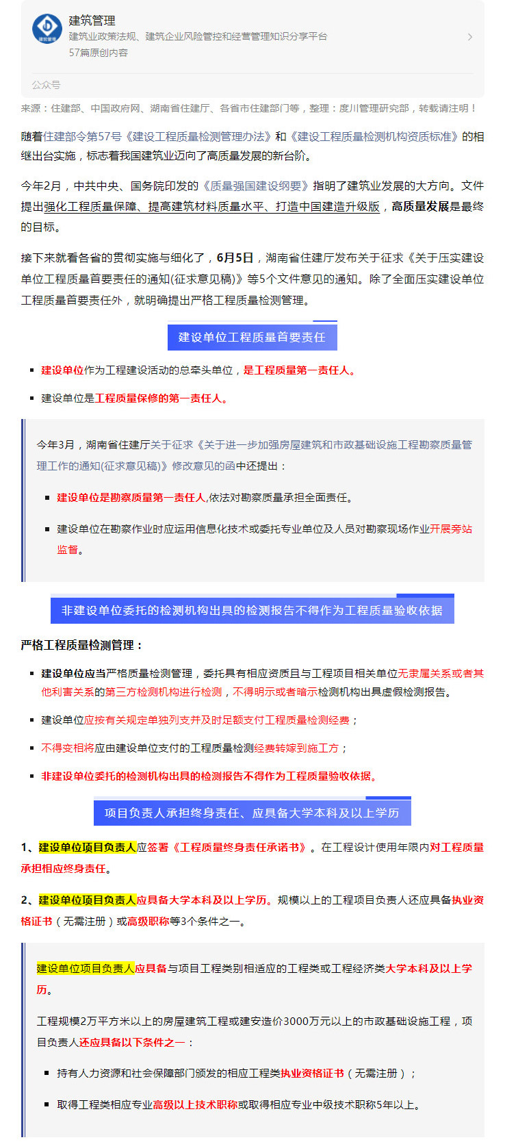 建設單位負首責!項目負責人終身責任!非建設單位委托的檢測機構出具的檢測報告不得作為工程質(zhì)量驗收依據