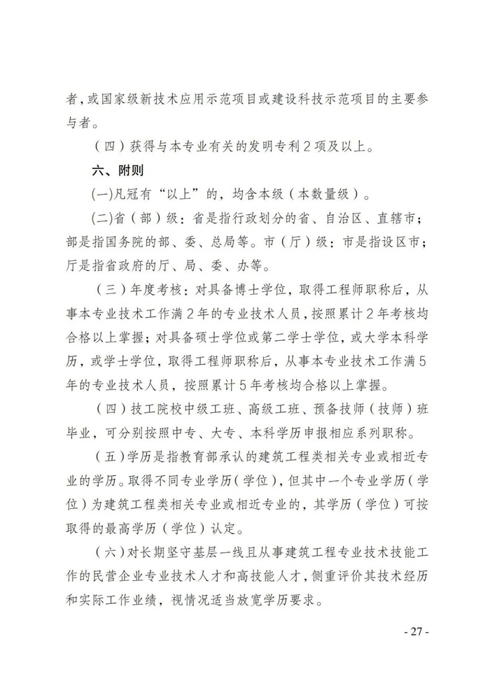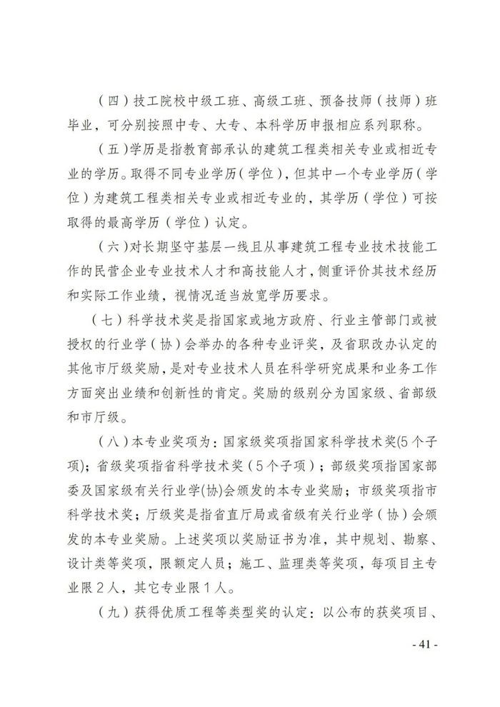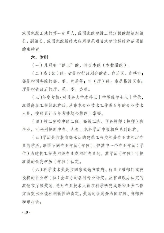 根據省委辦公廳、省政府辦公廳《關(guān)于深化職稱(chēng)制度改革的實(shí)施意見(jiàn)》(瓊辦發(fā)〔2020〕40號)等相關(guān)規定,立足服務(wù)保障海南自由貿易港建設,聚焦人才強省戰略和創(chuàng )新驅動(dòng)發(fā)展戰略,積極釋放人才制度創(chuàng )新活力,推動(dòng)我省住建行業(yè)建設工程專(zhuān)業(yè)技術(shù)人才隊伍建設,制定本評審條件。
