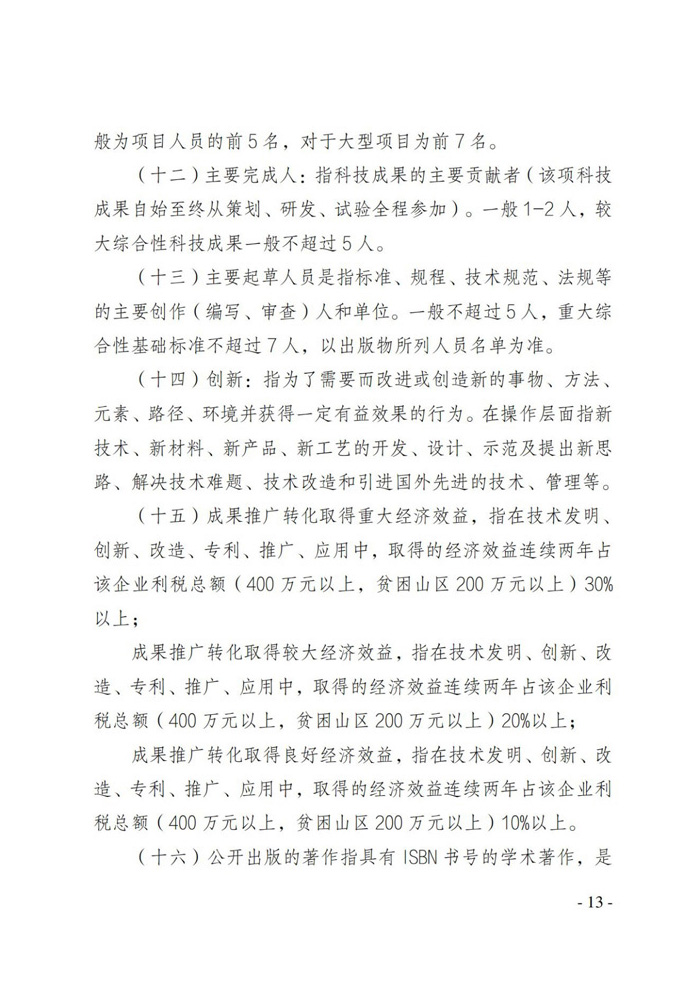 11.科學(xué)技術(shù)進(jìn)步獎(及相應獎項):指對推動(dòng)科學(xué)技術(shù)進(jìn)步做出重要貢獻的集體和個(gè)人給予的一種獎勵,一般由政府部門(mén)直接頒發(fā)或認可頒發(fā)。在該獎項等級額定獲獎人數內取得個(gè)人獎勵證書(shū)者。
