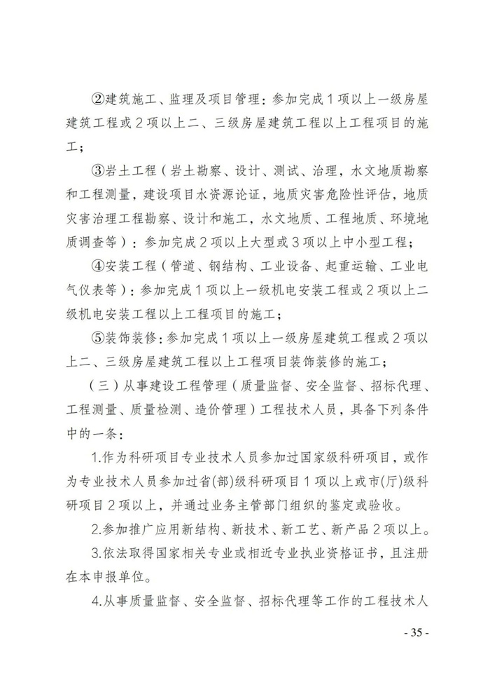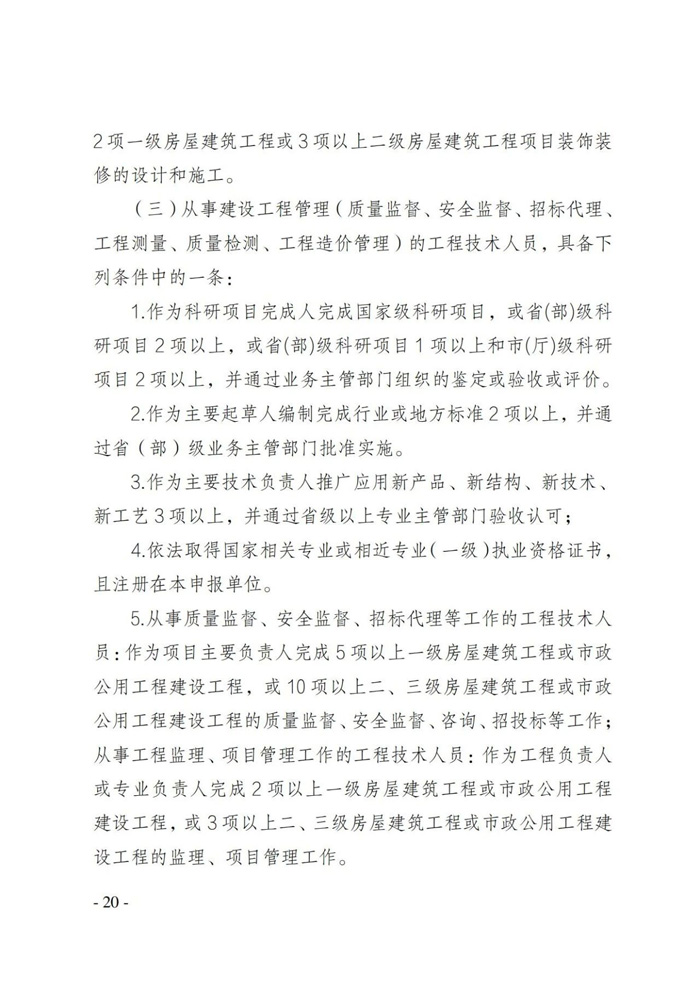 14.專(zhuān)業(yè)技術(shù)人員提交的行業(yè)標準、圖集、工法、授權發(fā)明專(zhuān)利等業(yè)績(jì)材料替代論文要求時(shí),相關(guān)業(yè)績(jì)不得重復使用。