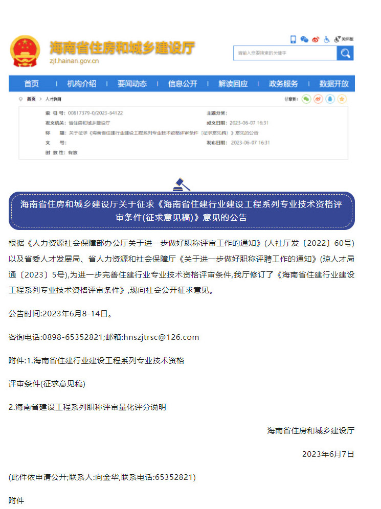 第十九條 本條件自印發(fā)之日起執行,未盡事宜按照國家和本省有關(guān)規定執行。原省住建廳、省委人才發(fā)展局印發(fā)的《海南省建筑領(lǐng)域工程技術(shù)人員高級專(zhuān)業(yè)技術(shù)資格評審條件(試行)》(瓊建人〔2019〕291號)同時(shí)廢止。