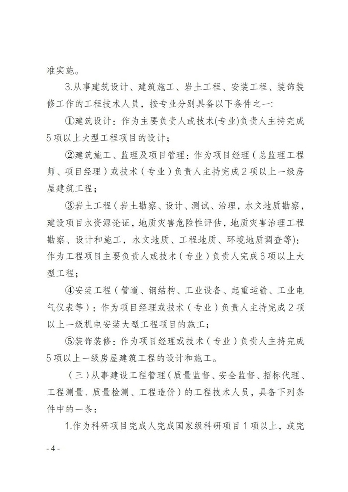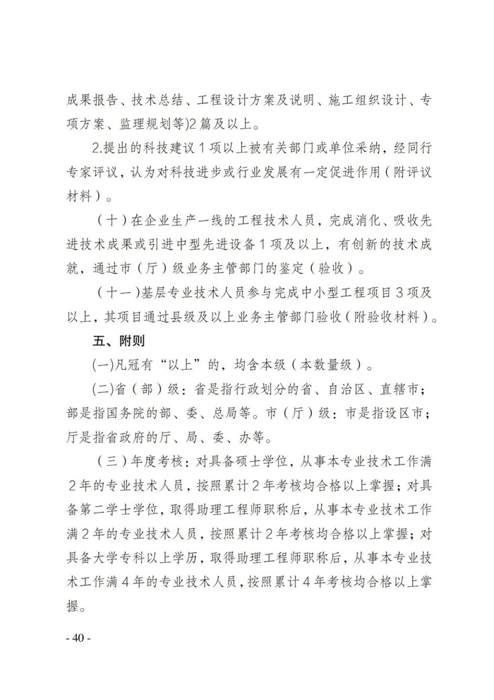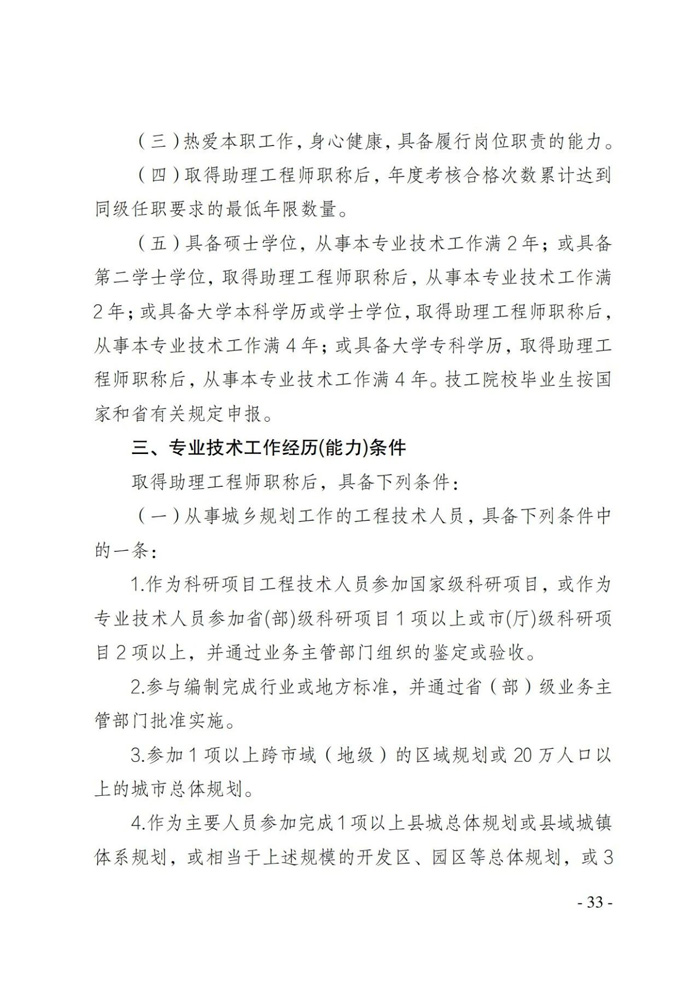 4.具有中等專(zhuān)科以上學(xué)歷,受聘相應專(zhuān)業(yè)助理工程師職稱(chēng)后,在基層一線(xiàn)從事相應專(zhuān)業(yè)技術(shù)工作滿(mǎn)7年,可通過(guò)“定向評價(jià)、定向使用”的方式參加職稱(chēng)評審。