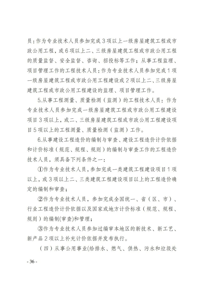 本條件適用于在我省企事業(yè)單位從事住建行業(yè)建設工程相關(guān)專(zhuān)業(yè)工作,并具有相應社保信息的在職專(zhuān)業(yè)技術(shù)人員;在我省工作的港澳臺專(zhuān)業(yè)技術(shù)人才(須取得港澳居民居住證、臺灣居民居住證);持有外國人永久居留證或各地頒發(fā)的海外高層次人才居住證的外籍人員,可按規定參加職稱(chēng)評審。公務(wù)員不得參加專(zhuān)業(yè)技術(shù)人才職稱(chēng)評審。