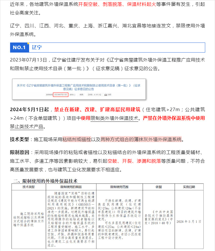 動(dòng)真格了,傳統外墻保溫系統幾乎全被禁限!